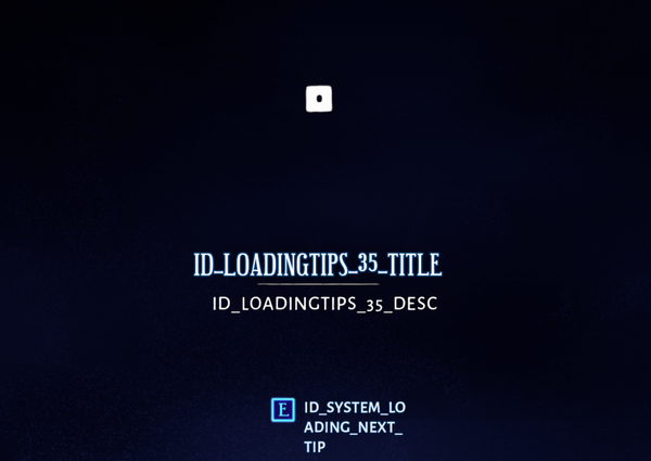 I'm getting wierd text id's and its stuck on loading. It doesnt show as a "not responding" task (in task manager), though. I can use E to switch the tips but it just shows "id_loadingtips_#_title" and not the actual stuff.