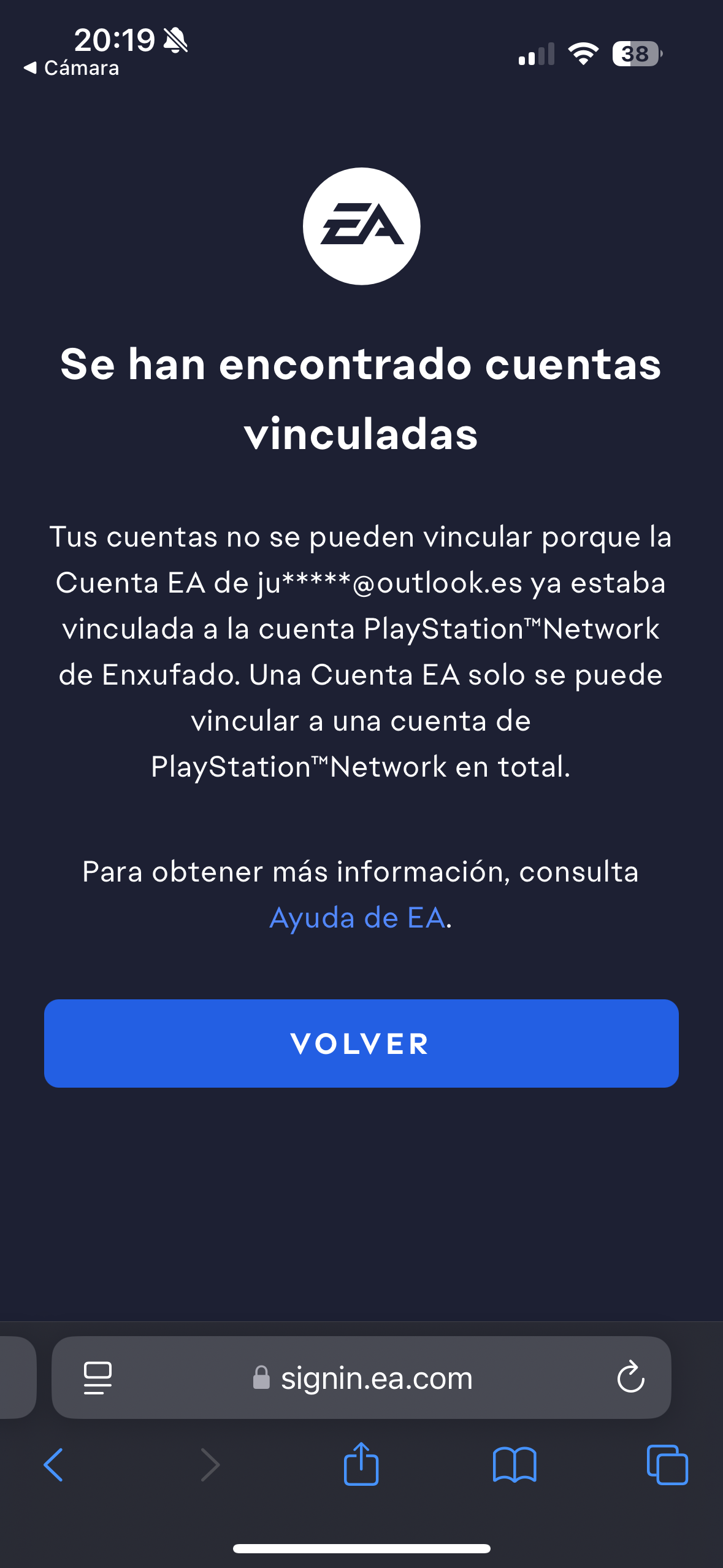 He comprado la PS5 y el FC25 y al entrar no puedo vincular mi cuenta actual de PSN con mi cuenta de EA.