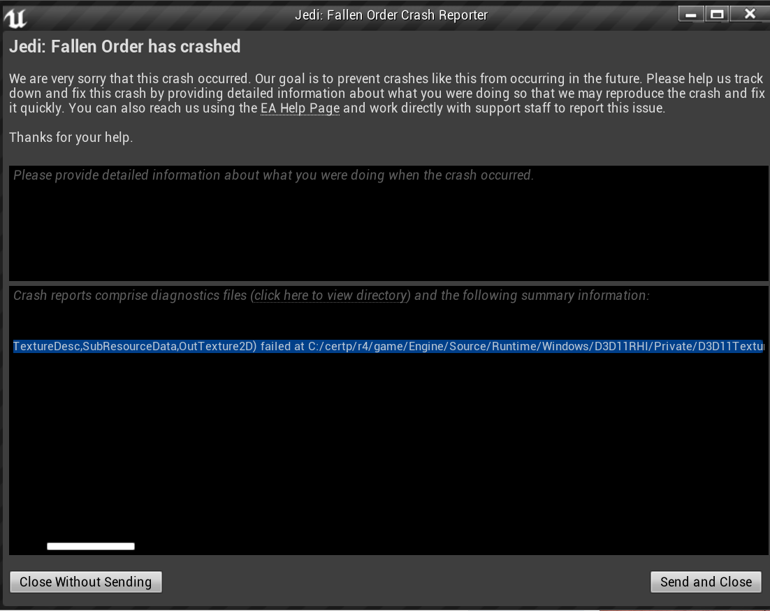 LowLevelFatalError [File:Unknown] [Line: 330] Direct3DDevice->CreateTexture2D(TextureDesc,SubResourceData,OutTexture2D) failed at C:/certp/r4/game/Engine/Source/Runtime/Windows/D3D11RHI/Private/D3D11Textu