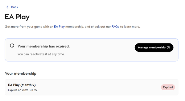 I bought EA play membership on 19th march 2026 and my account is saying its expired on 22nd, I just logged in today on 27th and found out.