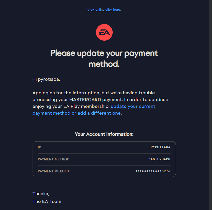 I was subscribed to the EA Play Pro for a year and got the auto renewal notice on 24 August. It said that I would need to pay 999TL(Turkish Lira) for the renewal. It was said to renew at 24.09.2024 ( which is today) I was okay with this and actually checked my payment methods to see if it was enough. 1 month later, my membership got cancelled due to payment issues and I did not get a chance to fix it. I got sent two emails back to back. I can re-subscribe but that means I lost the opportunity to pay the original price I was given(999TL). I didn't get an opportunity to fix if there was an issue and my membership was cancelled immediately. The two emails were sent at exact 13:02 back to back. I appreciate if you could help me.