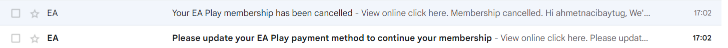 I got 2 e-mails at noon today, one saying that I needed to update my payment method and the other saying that my subscription was canceled. one came at 13:01 and the other at 13:02. I had updated my ...