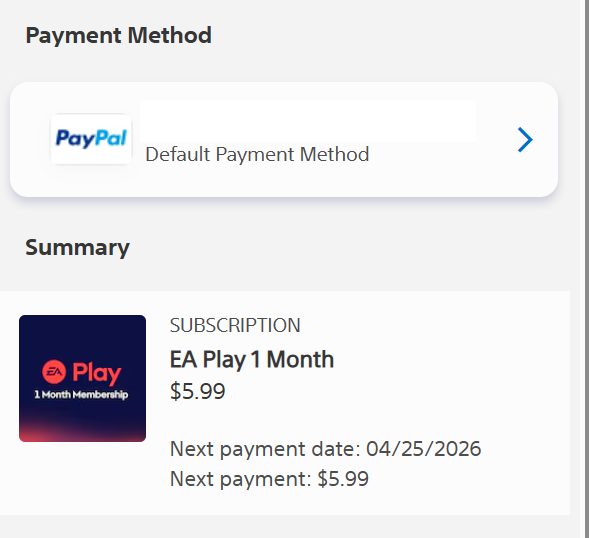 1st i tried Remove and Re-add Payment on payal using on playstation store web. and didn't work2nd i tried add a new payment method on ea app. and getting error message was saying: that didn't work and try again. if the problem persists you may want to use a different payment method or try again later.