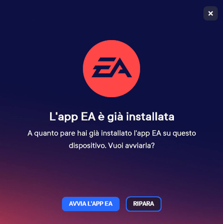 - 4 years ago@EA_Rigel ho provato seguendo i tuoi consigli, ma nulla, alla fine ho dovuto ripristinare windows, per fortuna adesso almeno l'app ea funziona