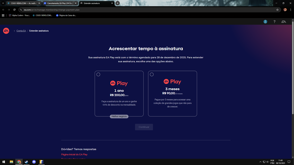 Não consigo gerenciar minha assinatura do EA Play, eu quero cancelar mas não aparece a opção. Vai direto para essa tela quando seleciono a opção "assinaturas e associações".