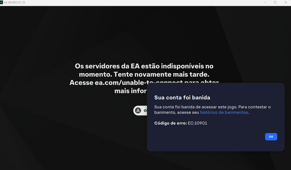 Ontem comprei o FC26 e deixei a noite fazendo o dowloand, hoje pela manhã acessei minha conta da EA para verificar se o download teria terminado e até aqui tudo bem. Ao tentar jogar recebi uma mensagem de que minha conta foi banida, eu não entendi o motivo até agora.