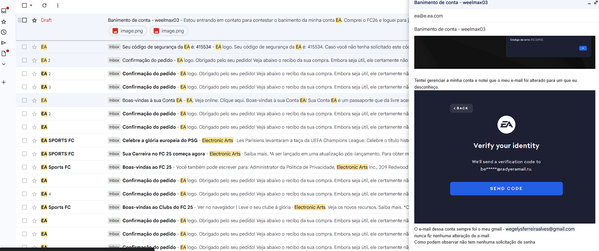 não fiz absolutamente nada. Tentei recuperar de todas as formas que consegui pelo aplicativo EA, mas ele tenta enviar um codigo para um e-mail que eu desconheço!