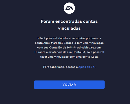 Pela indicação a sua conta pode estar vinculada a uma conta EA que possa ter sido desativada, se ainda tem acesso ao email original de criação dessa conta tente redefinir a senha para ver se reativa, se tiver dificuldades recomendo falar diretamente com o nosso suporte para que possam tentar ajudar.