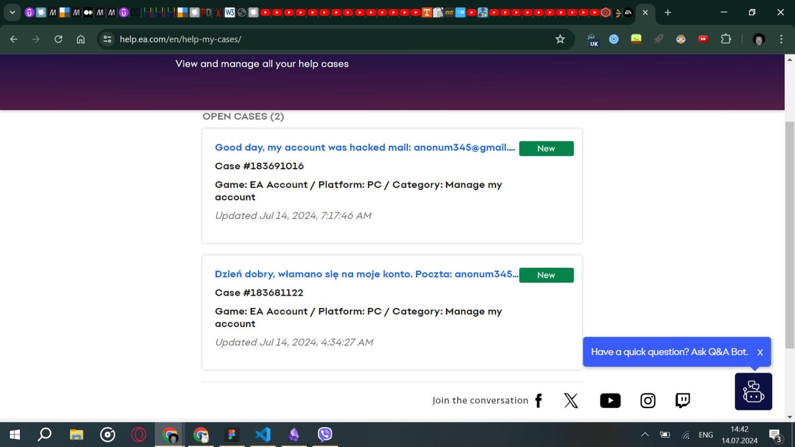 У меня похитили аккаунт, уже 2 день пробую найти тех поддержку в этой канторе, честно уже достало, перехожу по разным силкам, смог написать на почту community и некоторый case открыть 2 раза, где прикрепил фото, но никто не отвечает, тотальный игнор. Что мне делать, сам из Украины, звонить в поддержку не смогу, другие варианты почему-то не работают. перехожу например по ссылке где нужно связаться с той поддержкой, а там никак нельзя связаться с ней, просто ужасная кантора.