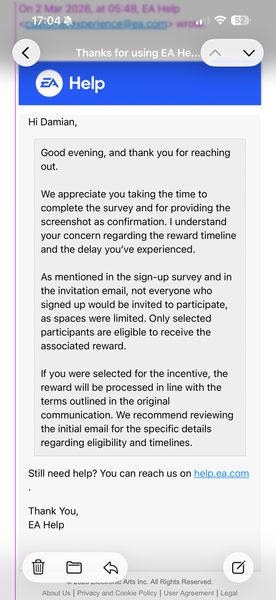 Anyone who also has a problem with accessing the survey that EA send out on the 21 of febuari 2026?