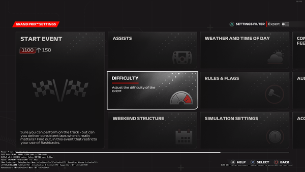 Summarize your bug When increasing the difficulty in events with the modifier option which using the F1 World car, other events under series using F1 (real cars) and F2 cars become affected by the modifier and gives no option to change the setting.