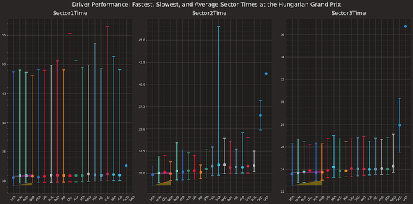 This graph circulated earlier. Topmost tick is the slowest time, bottommost tick is fastest, and the dot is the average time. Unfortunately I don't think the author purged the dataset from outliers.