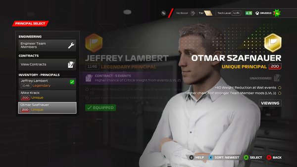 Summarize your bug Not sure if it's a bug. But you are award 2 unique Team Principals at level 45 & 50. But even though my tech level was above 1000, they were both only level 200.