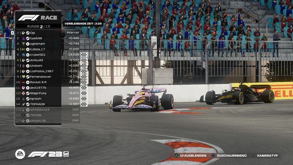 What happens when the bug occurs? When some car pass the start/finish line after the first lap, the race is over. You hear the winning cheer and every car afterwards is treated as finished the race. In the case today it seemed to the the fifth car, as 4 cars still where able to race the second lap. Afterwards the race was over. Luckily +0 points where given for the race (at least for me) so no loss.