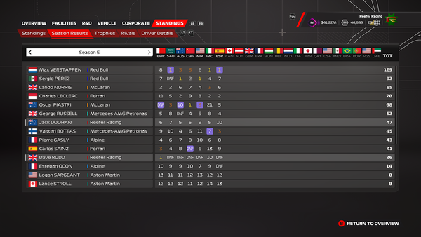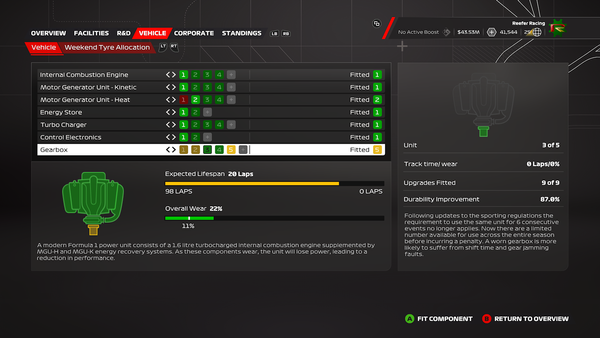 I'm at the start of season 5 with all durability upgrades fitted to a fully upgraded car.