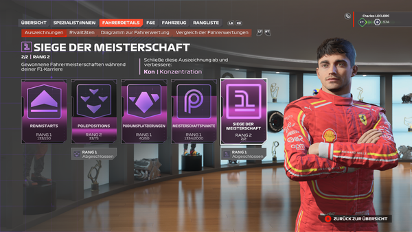 bei der Herausforderungskarriere für Charles Leclerc werden abgeschlossene Herausforderungen mehrfach vergeben, in meinem Fall die Auszeichnung für 30 Pole Positions, Punkte dafür gab es 2mal hintereinander und auch im Nachrichteneingang der Karriere taucht die Nachricht 2mal auf. Ebenso die Auszeichnung für gewonnene Meisterschaften. In der Übersicht für Auszeichnungen steht dort jetzt 2 Meisterschaften und auch die Punkte dafür gab es 2mal.
