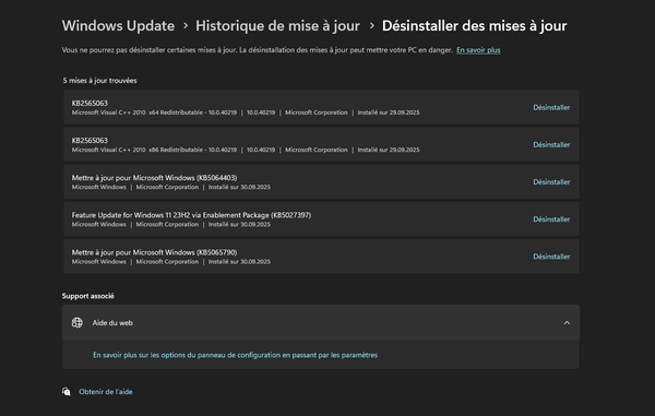 Bonjour, j'ai résolu le problème il faut simplement désinstaller la mise à jour windows : KB5064081