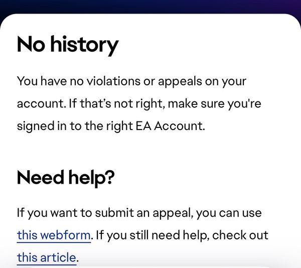 The worst part is I understand this is "an appeals" issue but there is no place to make appeals for f125 on the EA support website.