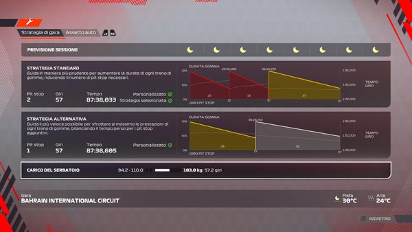 Just to frame the situation I run in GP mode, 100% length, AI 100 (opening race in Bahrain). In qualifying I saved two sets of new (S) tyres and I will start in P3. Maybe I could do P2 using an extra set of new tyres in Q3 but it doesn't change much and I preferred the race anyway. In reality, however, the simulation of the race strategy proposed by the game is very much in the balance between S-S-M and M-H: