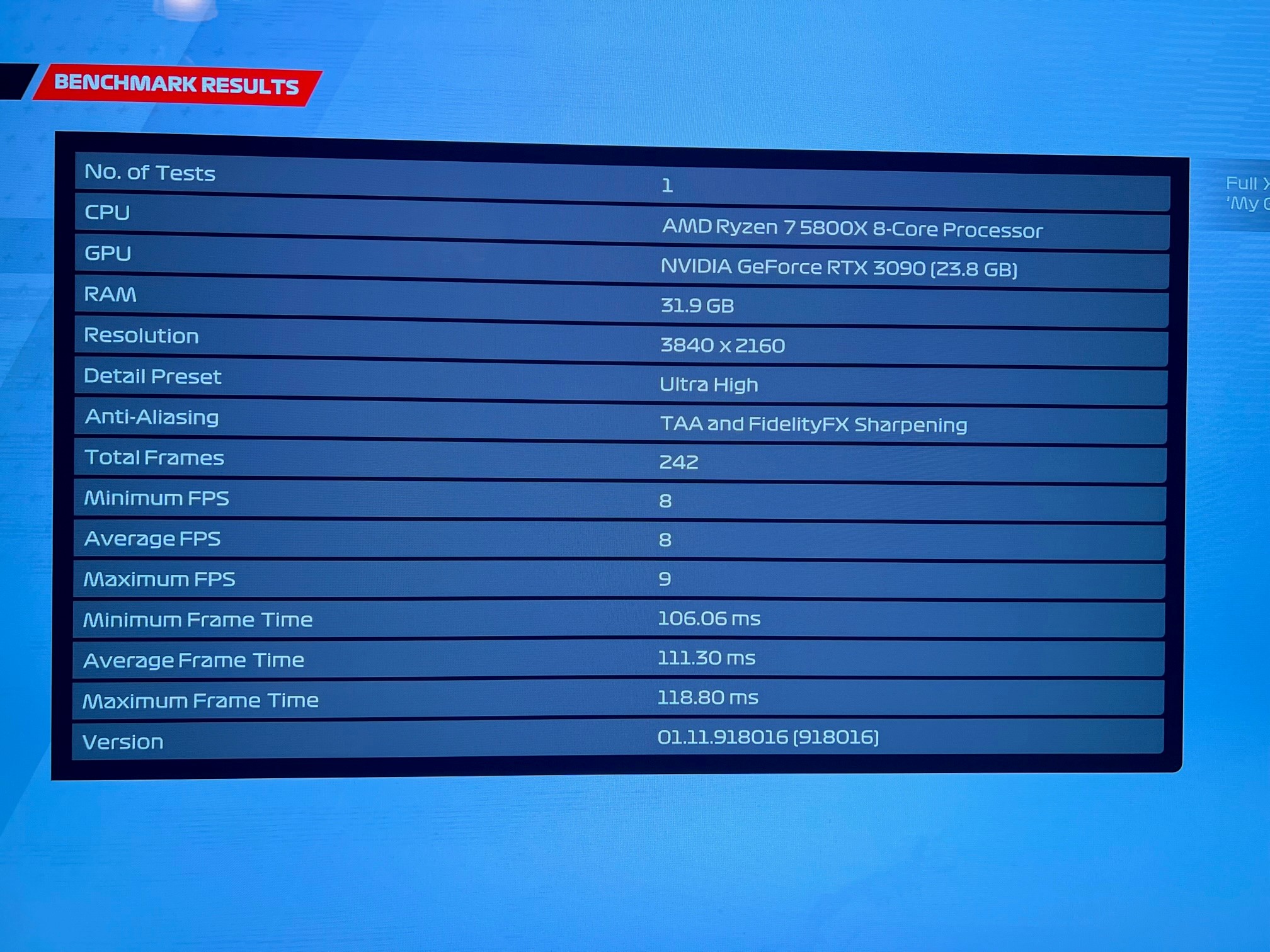Hello, I just bought F1 2022 and wow, this is the worst game performance I've ever seen. It gives me 8 FPS. 4k with ultra default setting AMD 5800x @4.8ghz RTX 3090 with the newest driver 32GB ra...