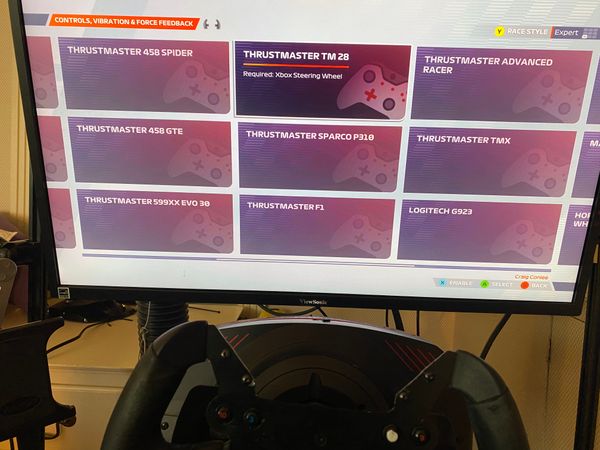 Are you talking about this? I am not sure the Thrustmaster wheel that should be selected. See the attached pic.