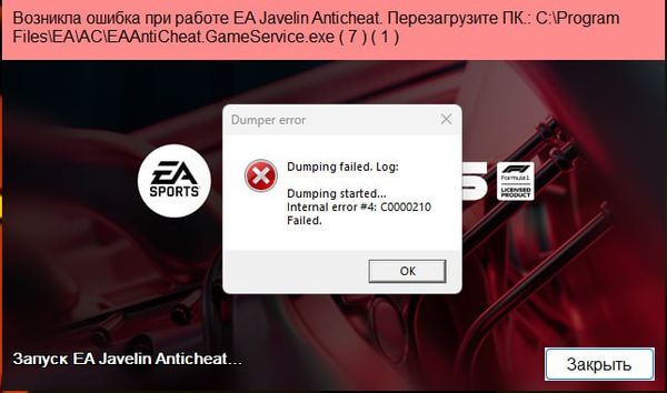 У меня выскакивает эта ошибка когда я хочу зайти в ф1 25. Что делать? Я пробывал перезапустить комп и переустанавливать античит на ф1, и ниче не помогло:(