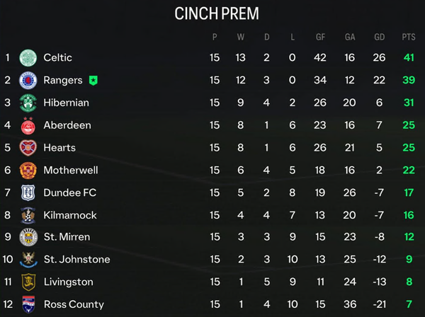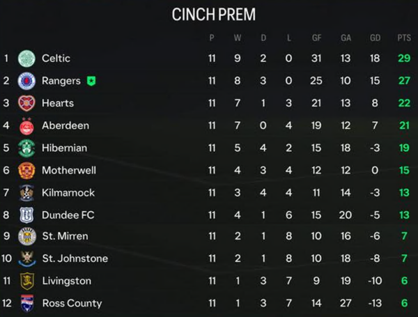 That's true with Aberdeen. But as I recall it, they were also close at this point a season ago. I don't expect them to be able to keep it up, if the two Glasgow's make another run for the 95-100 points or so.