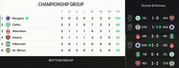 Thanks mate. I agree, I just played City in my Man United save, and they were unplayable then, winning 4-1 at Old Trafford. Awful. But this Rangers side is better put together at the moment, so there is a chance for me to do better here...
