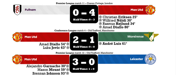 As for strikers, I think it's time that ten Hag gave Joe Hughill a chance. He's around the same age as Hojlund (so mature enough) and has been scoring quite a few in the academy matches. He deserves a chance. Like I said, try something different...