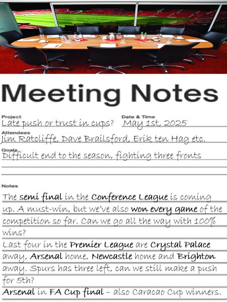 Great run of matches and into the top 6 with a game in hand in the league, a cup final and potentially another one being lined up.