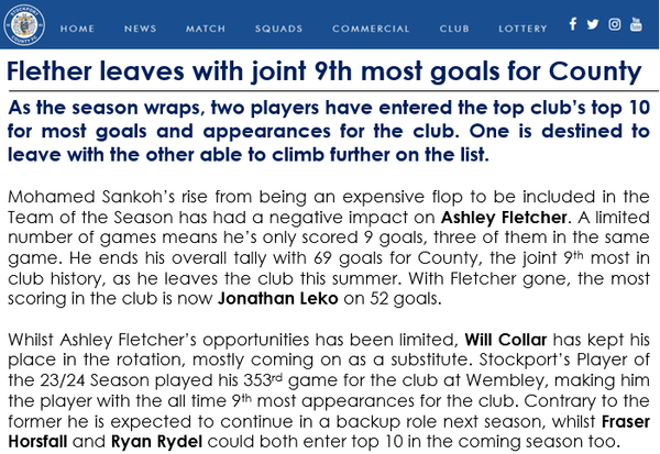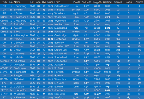 Exactly my idea. Didn't want to push a sale of any of my players except Humphrys, and since I didn't receive any offers worth considering except for the keeper, I decided to keep what I had. Plus the opportunity for veterans Collar and Fletcher to rise in the all-time rankings for goals and appearances for the club.
