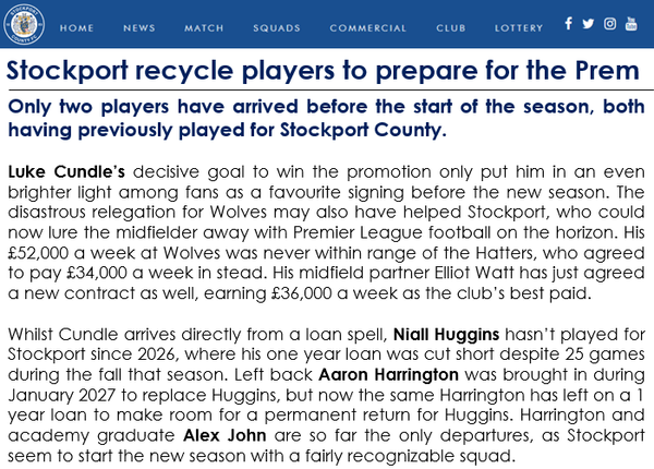 I like the transfer business. It seems like promoted clubs go a little crazy in windows to try preparing for the upper league and they lose their identity.