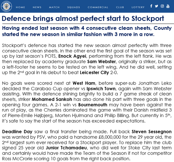 Great start to the season. The fixtures have been kind, avoiding the upper half teams as you settle into the league.