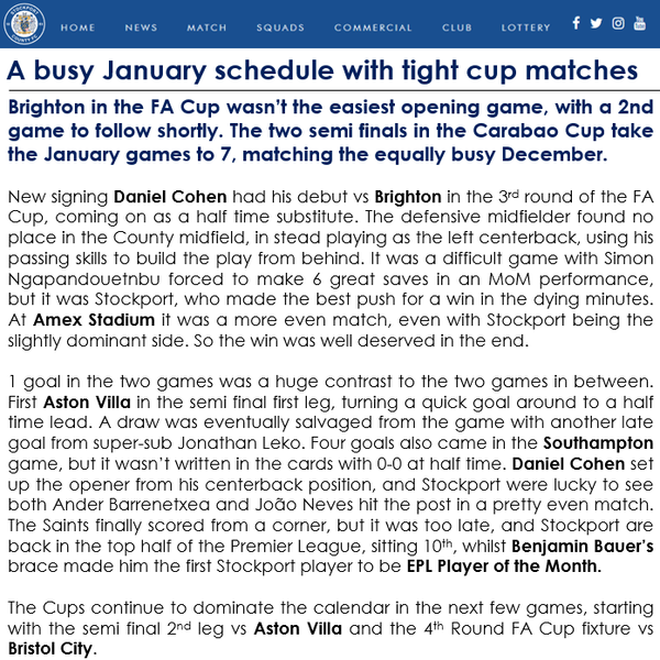 As a new County fan (at least virtually in this Career Mode future) I agree with your statement. I would rather see us winning the league cup then finishing 9th instead of 12th in the table!