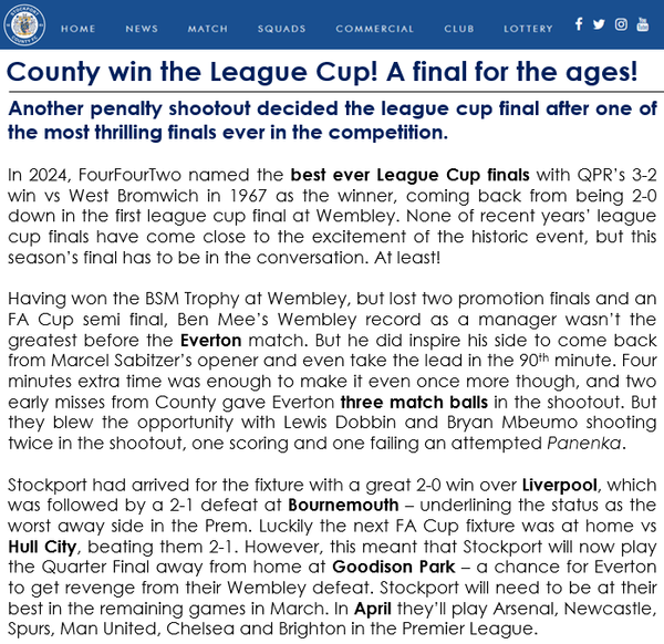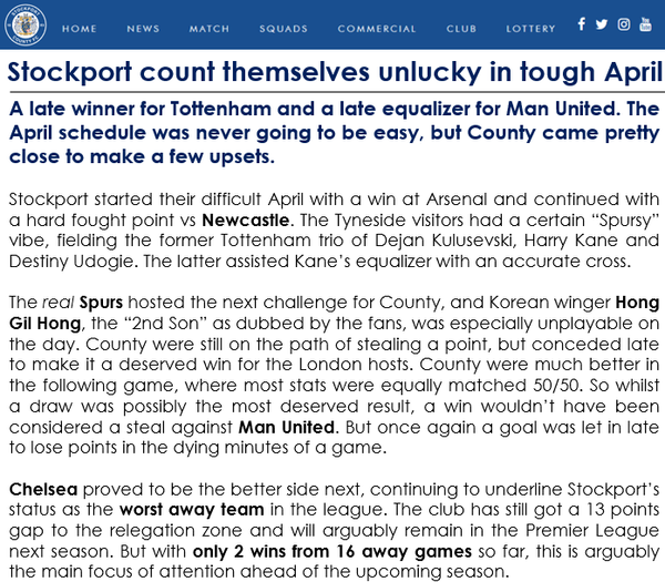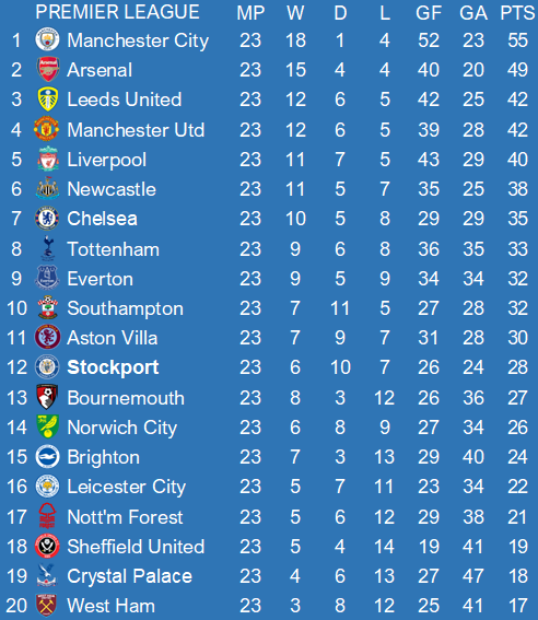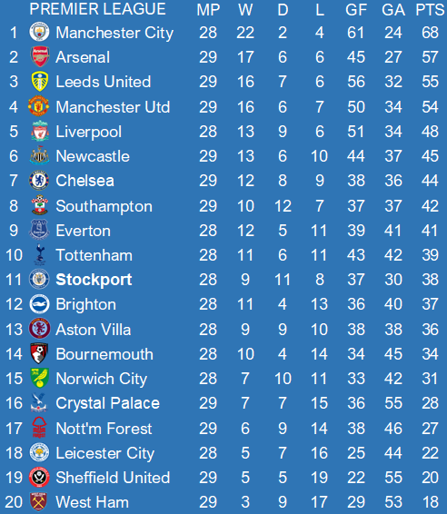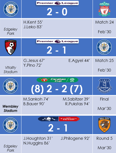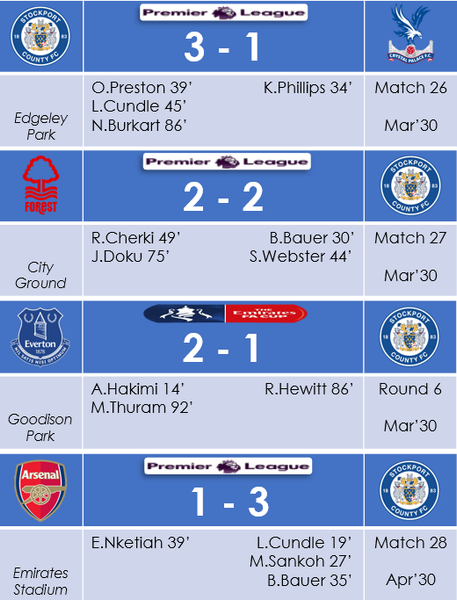 Only 10 games left, a trophy has already been won but it would be nice to see a +10 GD and more wins than draws. Just to make the season really special for Stockport. Finishing top 10 might be too greedy to ask.