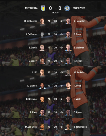Long shootouts indeed, both ending 8-7, but still quite different from each other. In the one vs Villa I only missed one attempt, compared to the Everton final, where I missed four. The latter would also have been a short one, if Hakimi had taken the opportunity to win the game with Everton's fourth shot.