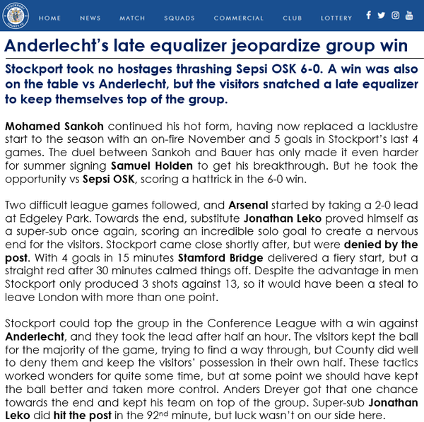 Thank, and I agree. However, I am actually still competing in three competitions š The Premier League, the Conference League and the FA Cup. I'm just not involved in the latter just yet.