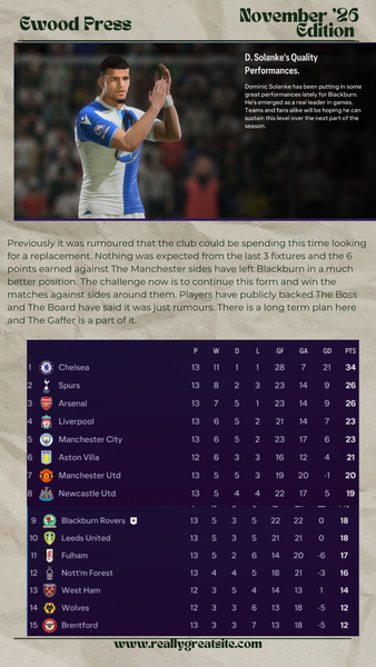 Good signings, I think. You started a bit slowly, and I see why the fans almost lost their patience. But Solanke and Chukwuemeka could be a deadly duo for you. The latter has played for Atlรฉtico Madrid through the most of my Rangers save, so signing him for Blackburn has to be an arrival to bring a little buzz.