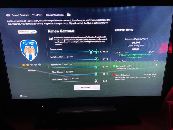 and a button to choose to move to a new club or stay at the current club has not been activated.