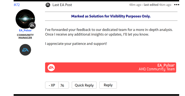 This issue has been picked up by EA, let's hope it gets resolved in the next update.