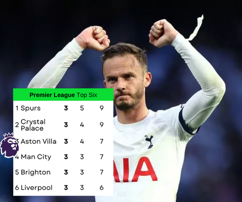 A perfect start for two London clubs and not the two we are used to seeing at the top. Tottenham and Crystal Palace have the most points and best defense in the league only allowing two goals this season.