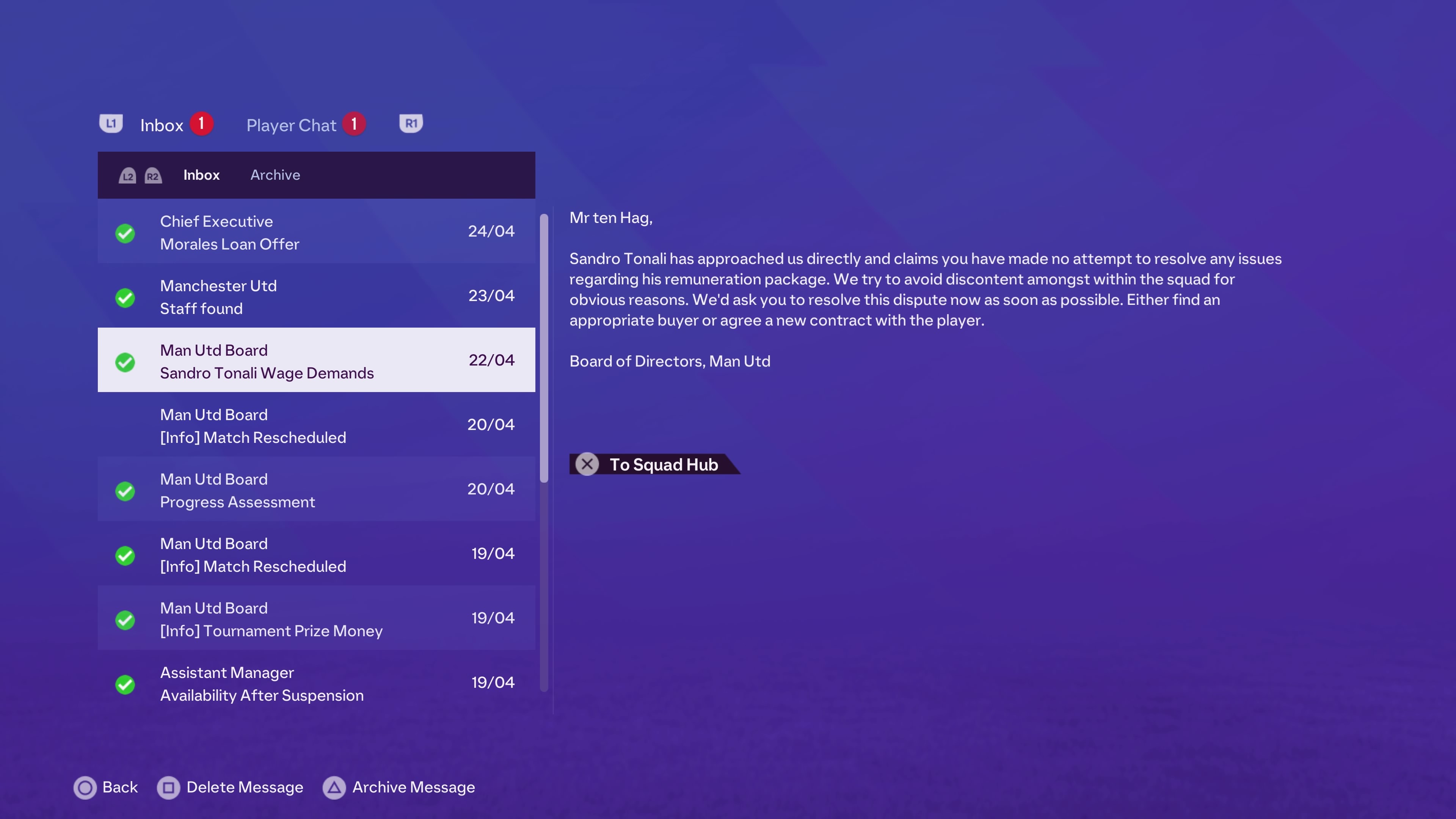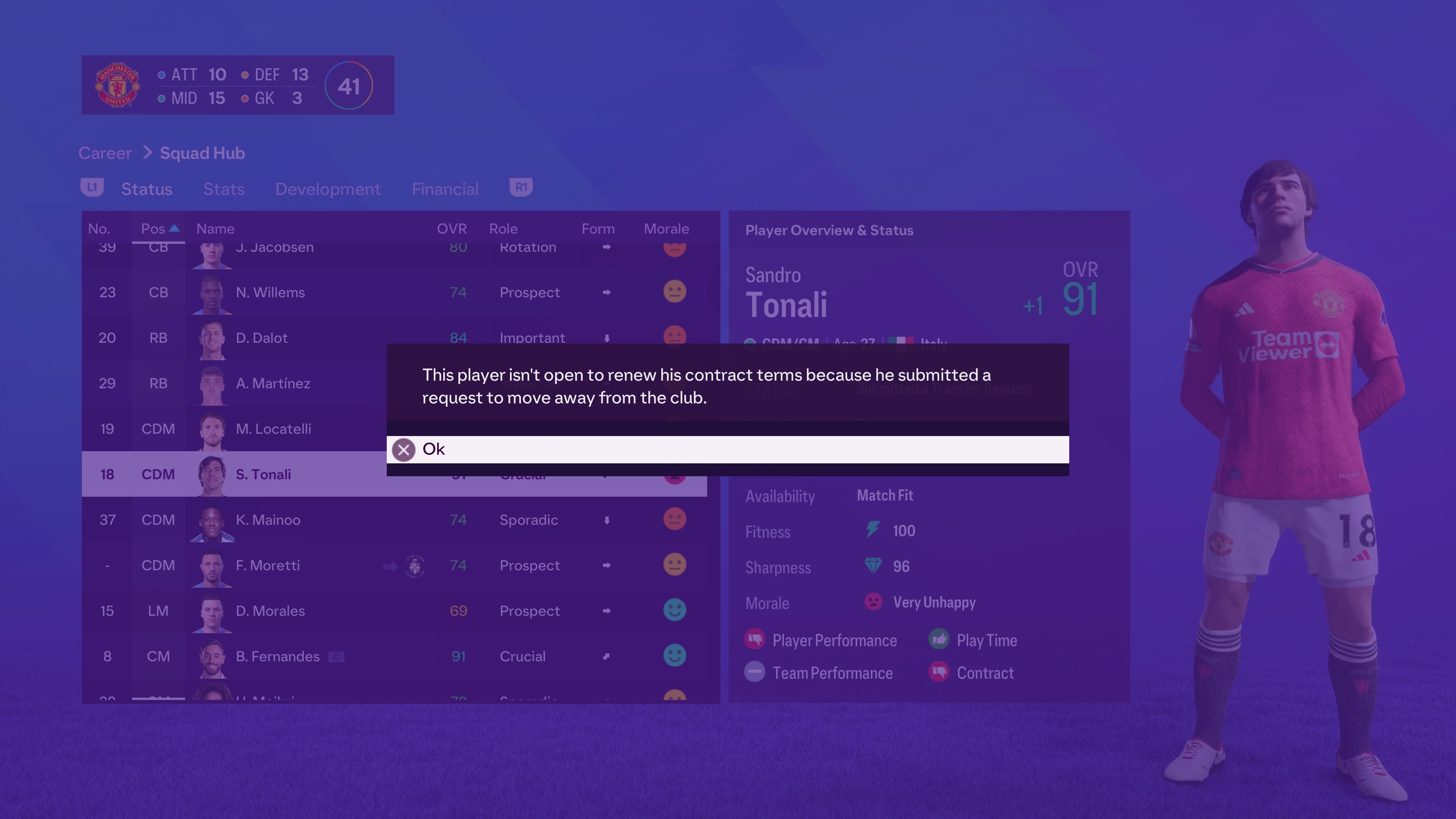 Can a way be made to allow us to remove transfer requests? It’s quite frustrating that this isn’t an option yet, and after no suitable transfer offers were received, the player wants me to renew his soon to expire contract, but I can’t because his transfer request from four seasons ago is still there.