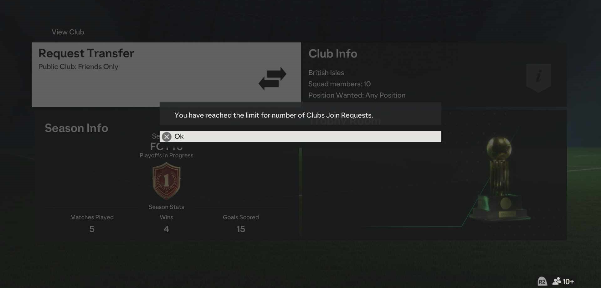 I'm not abble to join or send transfer requests to any Club as you see in the photo