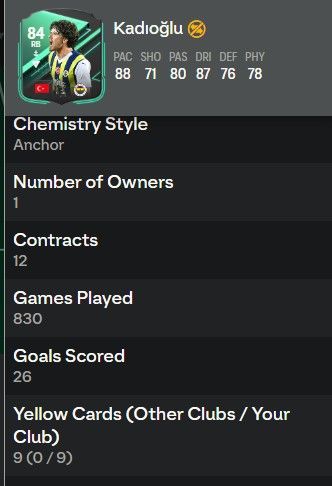 @hldnwt wrote:- Cancelo and Alaba evo fullbacks have been absolutely amazing for me on the main team. - that 84 Kadioglu 1st seaon reward card meanwhile lol all these years of FUT and it's rare I play 1000+ games with a card even tho I use the same players a lot (untradeable life > ) but never this close this early. - they should 100% release evo's for platers you have 500+ caps with for example. even if it's a +2/3 generic upgrade. - I'd looooooove to be able to upgrade this card just a little bit. - upgrades for heavily used players is such a good idea, even if it's just generic. I would have a few players too (IF Williams e.g.)