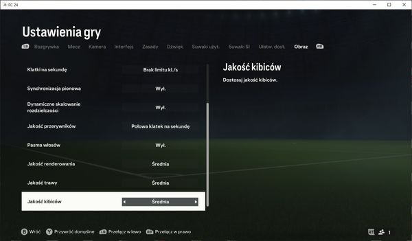 Piłkarz bez piłki porusza się normalnie, gdy ma piłkę przy nodze, obraz przycina. Wygląda to mniej więcej jakby był wyświetlany w 25fps.