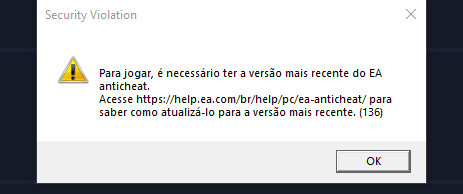 Como indicado na mensagem, você já tentou instalar a versão mais recente do anti cheat?