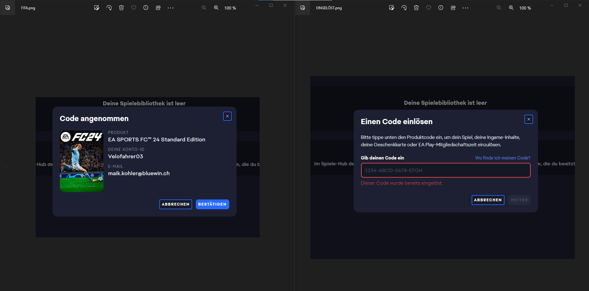 ich habe mir einen Key für EA FC 24 ULIMATIV EDITION gekauft und den Key in der EA Internet Seite eingelöst. Anschließend wurde mir angezeigt das dass Produkt erfolgreich eingelöst wurde, als ich die ea pc app öffnete bemerkte ich , dass das spiel nicht meiner Bibliothek hinzugefügt wurde und der Key Jetzt ungültig ist.