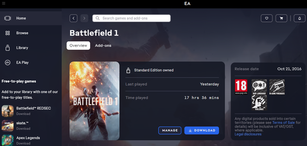 EA app says “game not installed” when the game is installed