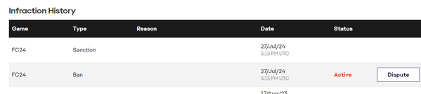 - jegervladimir2 years agoRising Scout@siu_sosi yeah same as me, but it doesn't mean it's permanent. Companion app says the same for those who are 7 days suspended as well. Did you check the ea ban history page? what does it say?