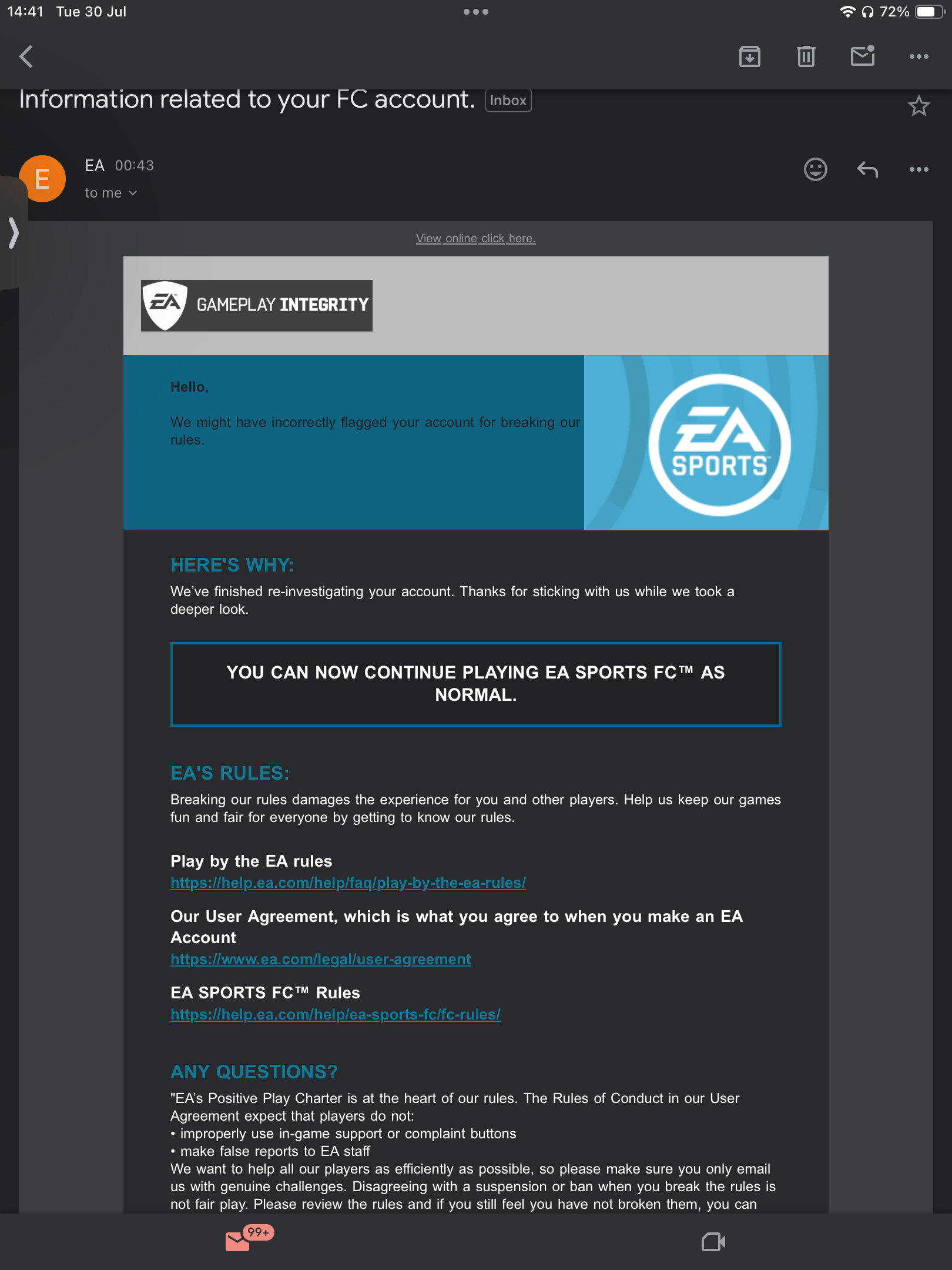 my email didnt have a time frame at all, i got an email about being unbanned but i still cant play. The guy i spoke to said the team is working on my issue though so im not sure how long this will take. I asked roughly how long the whole process takes and he said "10 days from when you raise the dispute here"